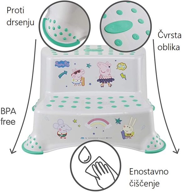 Otroška dvojna pručka je izdelana iz trpežne plastike in je praktična z protizdrsnim dodatkom je prenosna in enostavna za čiščenje.