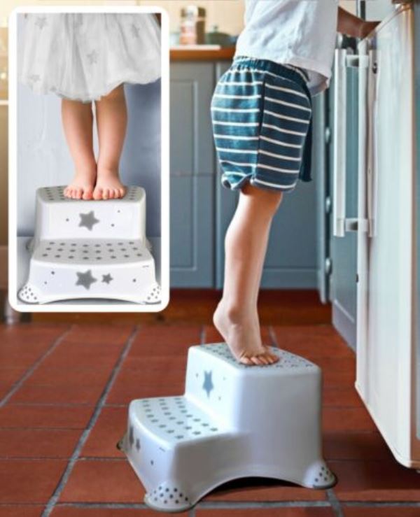 Dvojna pručka je namenjena otrokom, saj jim dodatna stopnička omogoča, da dosežejo tudi nekoliko višje površine. Hkrati pa služi kot varna in stabilna opora pri doseganju pipe umivalnika, straniščne deske, kot pomoč pri plezanju v banjo, itd.