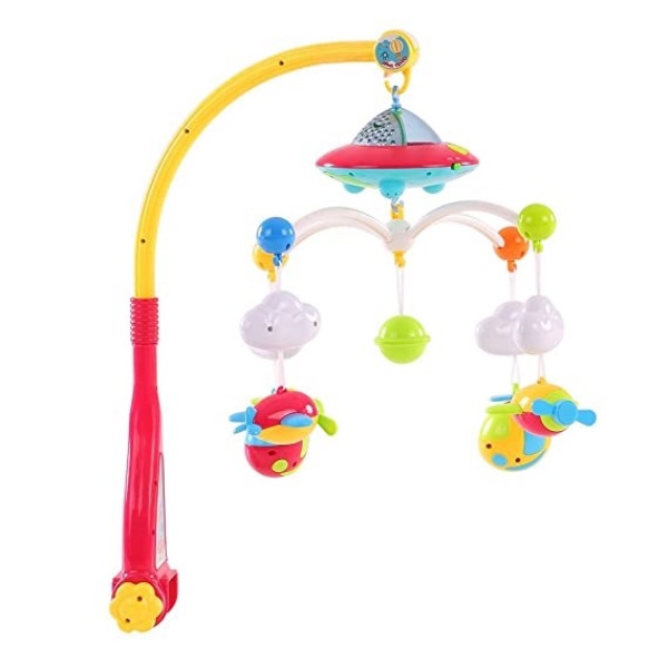 Glasbeni vrtiljak s projektorjem pomirja otroka in mu pomaga zaspati.