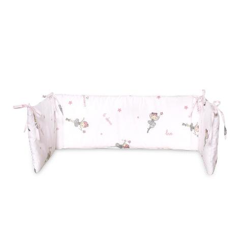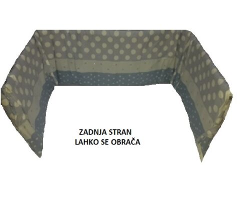 Zaščitna obroba za posteljico je namenjena malčkom za varno spanje in ležanje v posteljicah. Preprečuje zapletanje z nogicami in rokicami med letvicami in onemogoča plezanje čez posteljico. Zelo mehak in oblazinjen material blaži udarce v letvice.