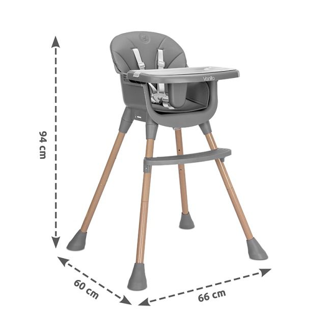 Otroški stolček za hranjenje Vanilla 3v1 je sodobna in vsestranska rešitev, ki združuje udobje, varnost in praktičnost v enem izdelku. Zaradi svoje 3v1 zasnove omogoča dolgotrajno uporabo in se popolnoma prilagaja rasti vašega otroka.