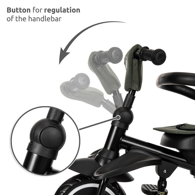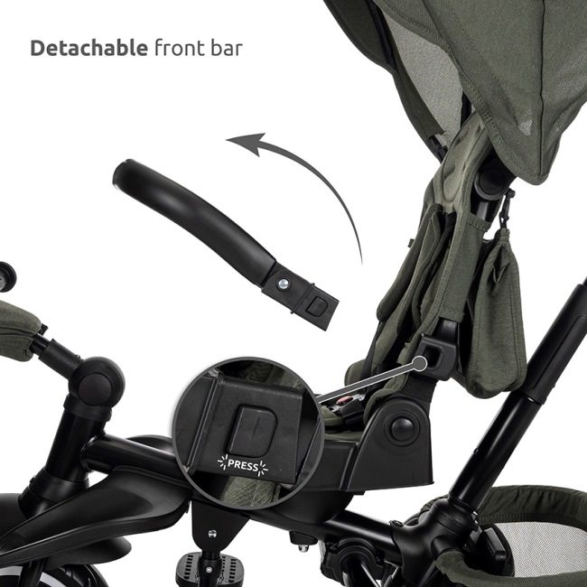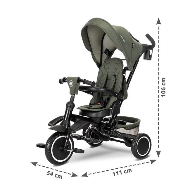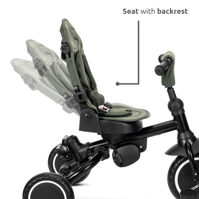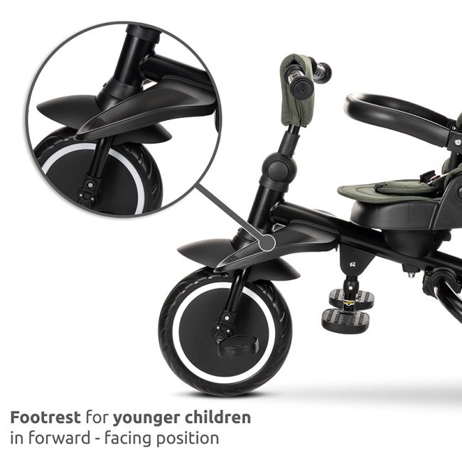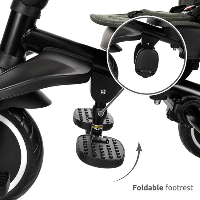 Tricikel ima udoben sedež, zložljiv senčnik in zložljiv naslon za noge. Vse to zagotavlja popolno udobje za vašega otroka.