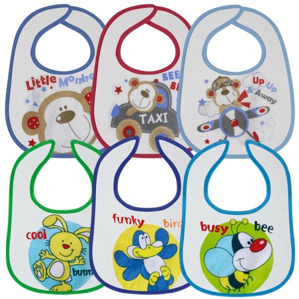 V paketu so 3 slinčki. Namenjeni so za vse starosti otrok ki se učijo samostojno jesti. Enostavni za vzdrževanje. Namenjeni so za novorojenčke in tudi za večje otroke. Praktično za vse tri obroke, zajtrk, kosilo in večerjo. Izdelani so iz mehkega bombaža in podloženi s PVC podlogo proti premočenju. Odtisi so zanimivi in pritegnejo pozornost otrok. Zagotavljajo popolno zaščito za otročka in oblačila. Je enostaven za uporabo .