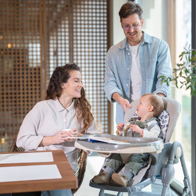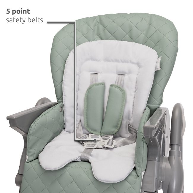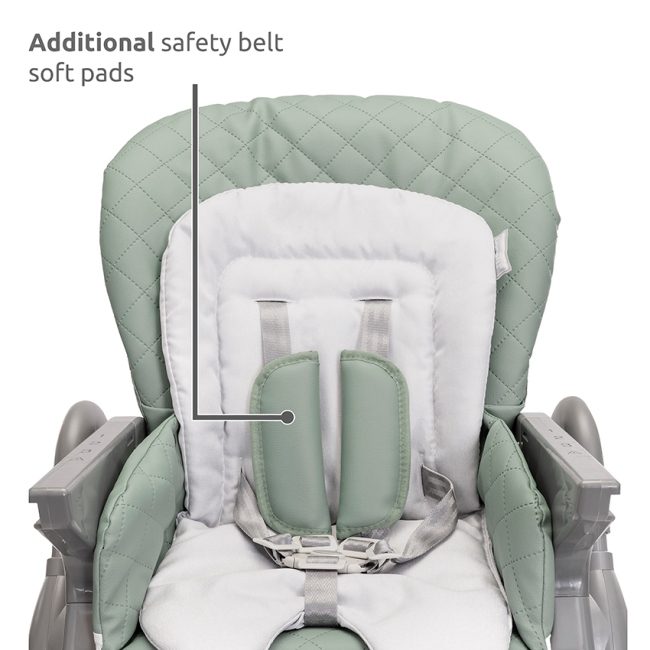 Izdelek je izdelan v skladu z evropskim varnostnim standardom EN 14988:2017+A1:2020 – Otroški visoki stoli. Zahteve in preskusne metode.