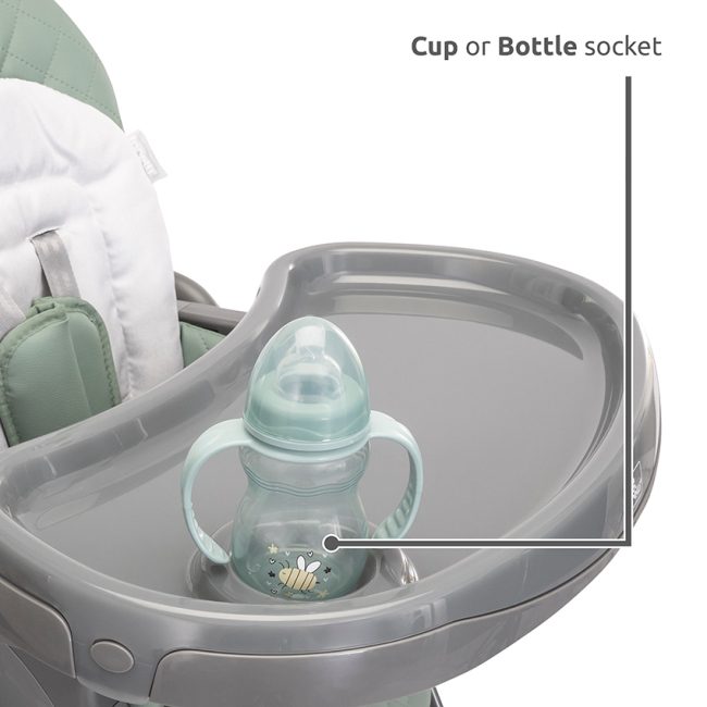 Dve plošči (odstranljiva zgornja plošča); Zgornji snemljiv pladenj ima mesto za skodelico ali stekleničko s čimer prispeva k stabilnosti posodic.