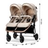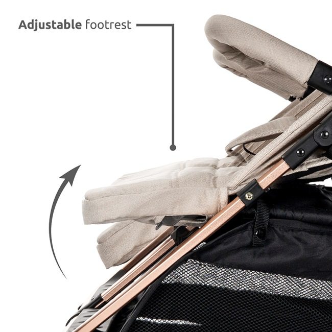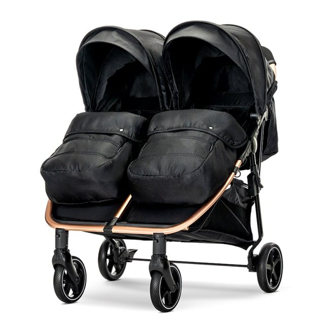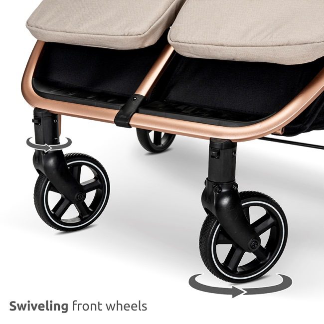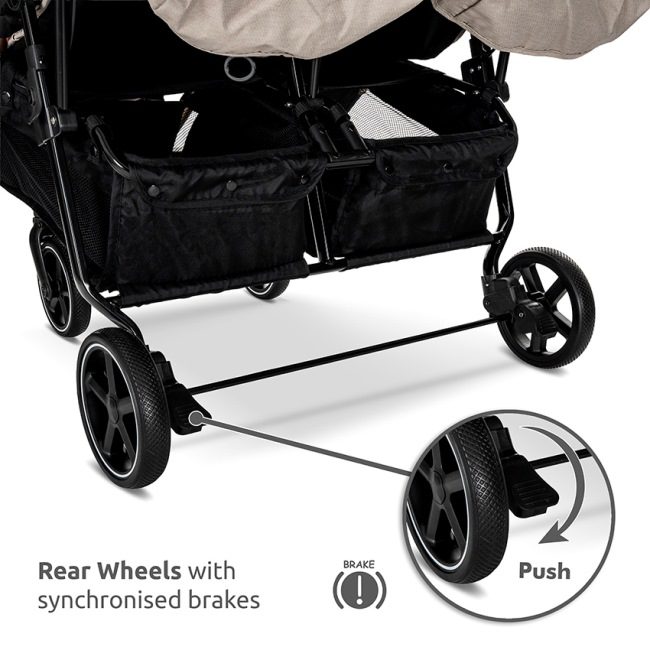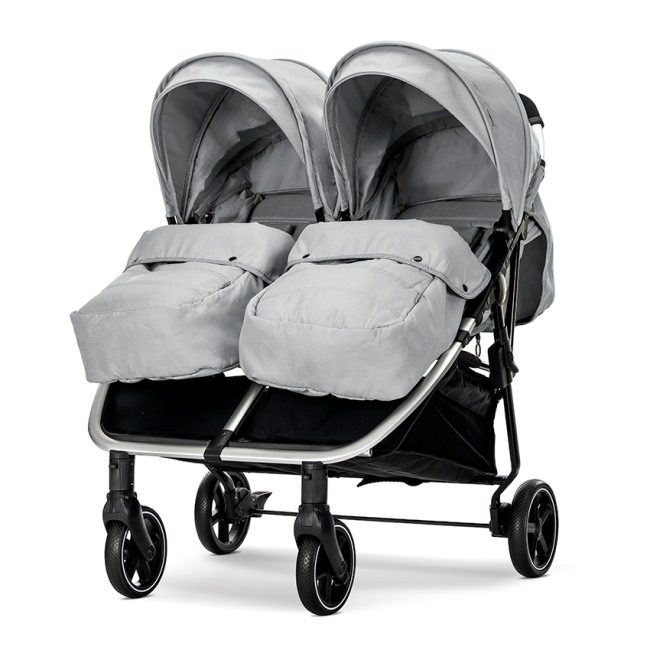 Veselje ob dvojčkih je dvojno in tak voziček je zanje. Ne glede na to, kako lahko sta si oba otroka enaka, vsak od njih razume udobje drugače in zato so sedeži vozička popolnoma neodvisni drug od drugega, skupaj z različnimi položaji, ki jih lahko dosežete z obema. Voziček je primeren tako za poletno kot zimsko sezono in njegova največja prednost je, da ga je mogoče zložiti z eno roko brez veliko truda. Tudi nakupovalna košara je dvojna in če je še vedno nezadostna, lahko torbo uporabite za dodatke. Voziček je na voljo v več barvah. Njegova konstrukcija nosilnost za dva otroka skupaj 30 kg .